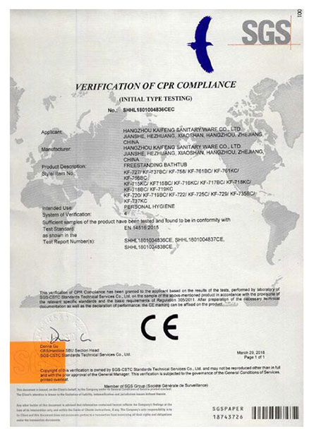 CE of freestanding bathtub